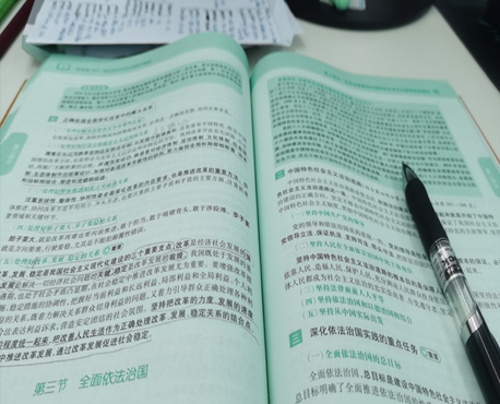 除了看书之外,我觉得每天应该看新闻联播,阅览主流网站,多看一些像《人民日报》或者到学习强国学习党中央的政策精神的文章或视频资料。一定要在这个阶段对政治各科内容有一个整体印象,这样在暑假集中起来学习时会更轻松。