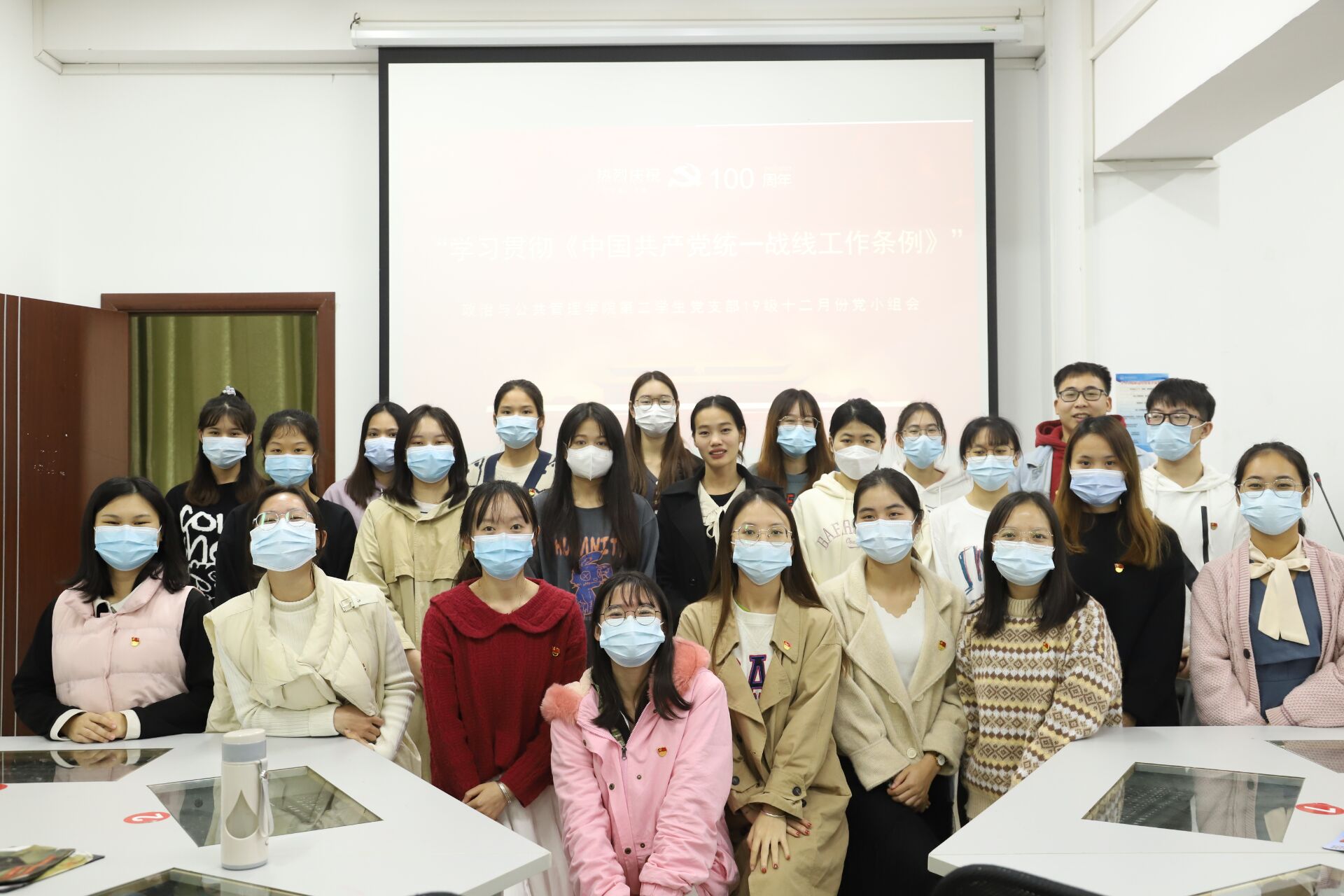 为了加强和规范统一战线工作,巩固和发展爱国统一战线,加强爱国情感,2021年12月15日,政治与公共管理学院第二学生党支部19级党小组在明德楼北楼512召开学习《中国共产党统一战线工作条例》(以下简称《条例》)会议,参会人员有政治与公共管理学院第二学生党支部19级党员同志,本次会议由廖娟同志主持。