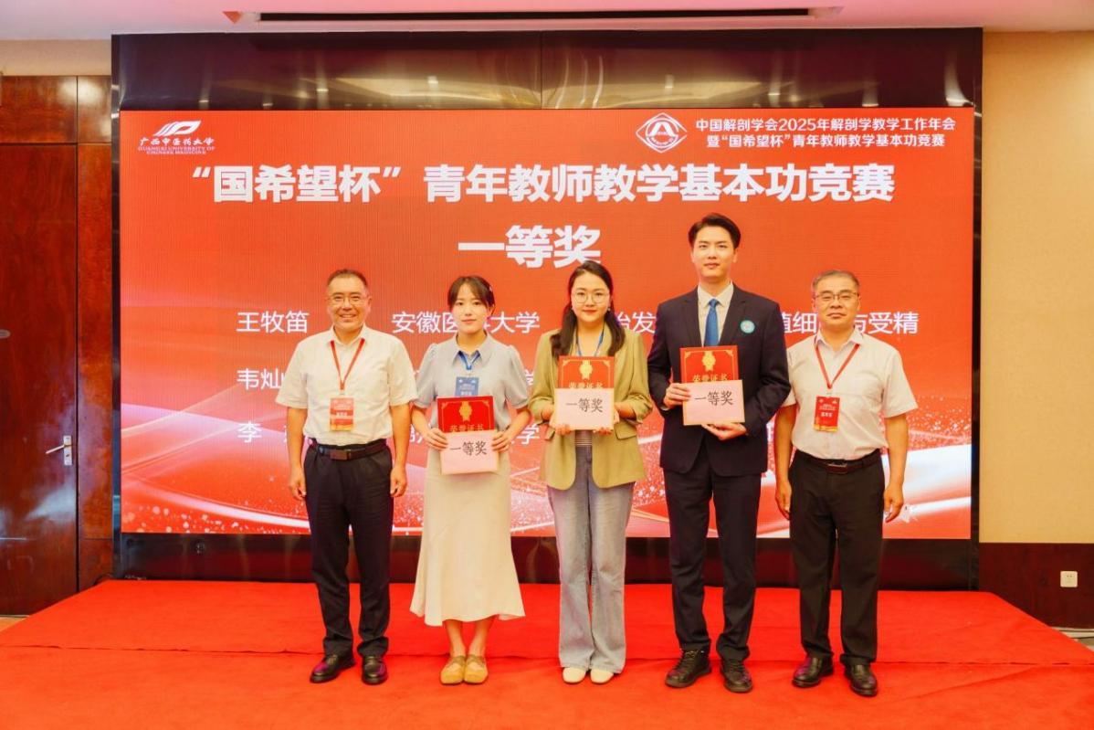 8月1日至4日,中国解剖学会2025年教学工作年会在南宁召开,本次年会以“创新融合性教学引领推动解剖学教学新变革”为主题,汇聚全国众多专家学者与青年教师共探学科发展。年会期间,同期举行青年教师教学基本功竞赛,23名全国优秀青年教师同台竞技。我教研室党支部党员韦灿燊同志,凭借扎实专业功底、创新教学设计与出色临场表现,从众多选手中脱颖而出,斩获大赛一等奖(全国三名)。其作为党支部一员,以实际行动践行党员担当,在教学竞赛中展现出党员教师的卓越素养与奋进精神。这一佳绩,不仅是其个人教学能力的体现,更彰显了人体解剖学教研室党支部在师资培养中,以党员先锋力量带动教师成长、助力教学改革的积极成效。未来,党支部将继续发挥引领作用,激励更多党员教师牢记使命,挺膺担当,在教学科研一线发光发热,为学院人才培养、学校高质量发展贡献青春力量。