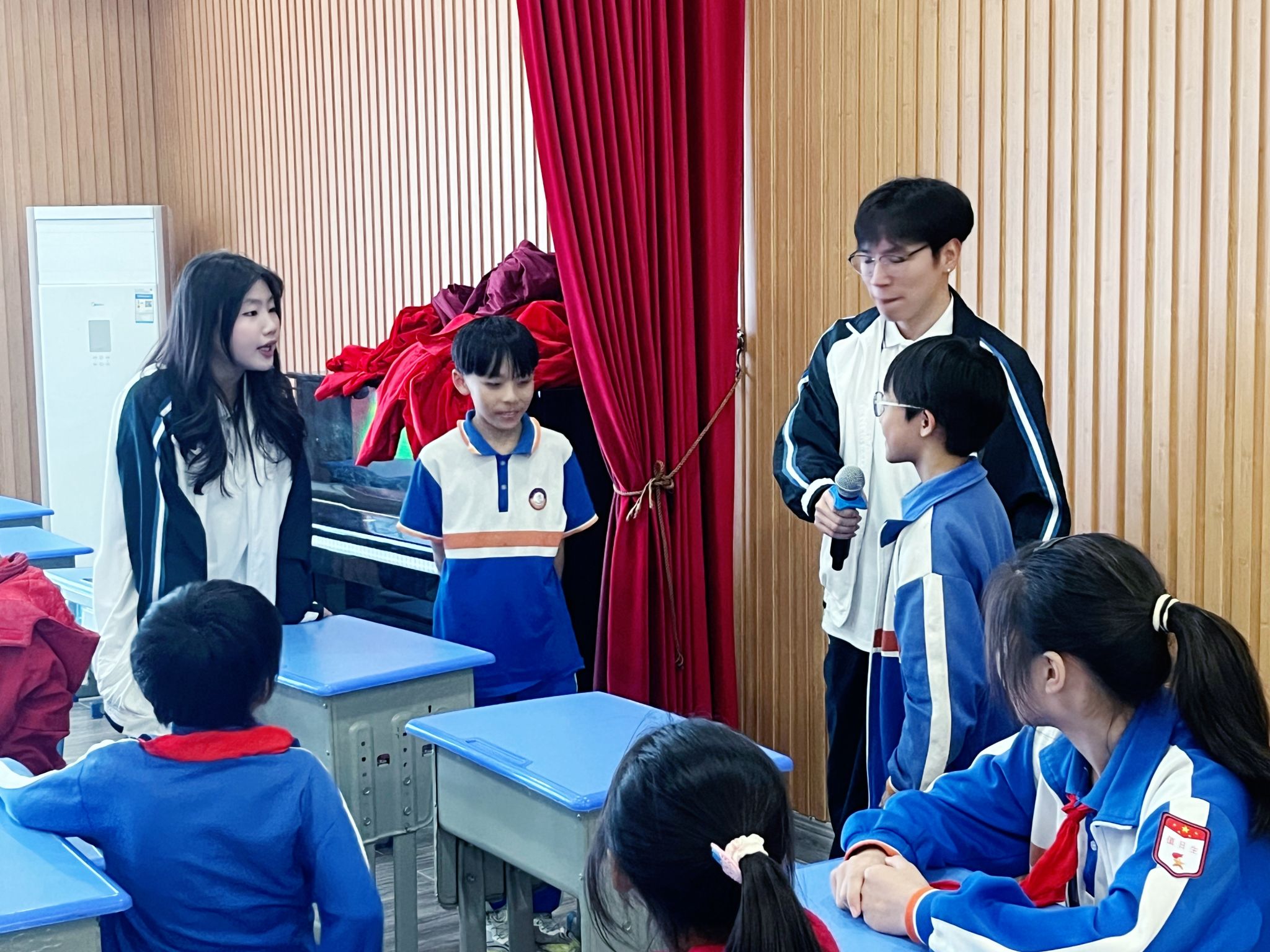 课程尾声,志愿者们带领全体同学进行了一场别开生面的课堂总复习。通过“快问快答”“个人抢答”等竞赛形式,本节课的核心句型和单词被再次激活。孩子们全神贯注,争先恐后地举手回答,准确而流利的表达,为本次课程画上了一个圆满的句号。