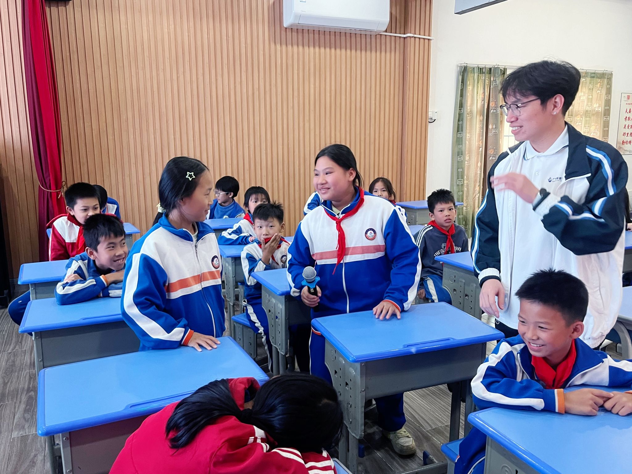 11月21日,我院全国“双带头人”教师党支部书记“强国行”专项行动团队前往佛冈县水头镇中心小学,开展了一场以“My Hobby” 为主题的趣味英语支教活动。志愿者们精心筹备,带领小学生们在欢声笑语中畅聊兴趣爱好,开启了一段快乐的英语交流之旅。