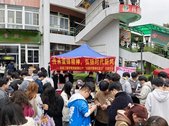 3月5日学雷锋纪念日当天,学院党委在第二食堂门口举办了“雷锋知识问答竞赛”活动。活动采用“线上+线下”双线联动模式,师生可通过学院公众号参与线上答题,也可在线下摊位通过趣味互动参加答题。题目涵盖雷锋生平事迹、雷锋精神内涵及新时代榜样人物事迹等内容,吸引了2000余名学生踊跃参与。大家纷纷表示,“答题不仅加深了对雷锋精神的理解,更激励我们在日常生活中践行助人理念。”