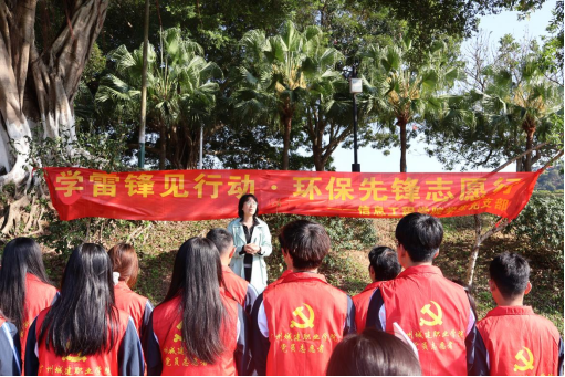 活动伊始,学院党建办公室指导老师、学生第五党支部书记老师苏碧玲向参与人员阐明活动意义:“环保行动是新时代学雷锋精神的具体实践,我们要用双手守护绿水青山,用党性引领生态文明。”她特别强调安全规范,要求大家清理垃圾时注意个人防护,宣传小组要创新表达方式,让环保理念深入人心。