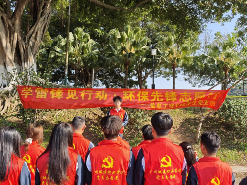 3月20日,春意盎然的从化区风云岭湿地公园迎来了一场别开生面的主题党日活动。我院学生党支部30余名师生党员代表及党建办公室干部,以“学雷锋见行动˙环保先锋志愿行”为主题,将雷锋精神与生态保护实践深度融合,为春日公园增添一抹亮色。