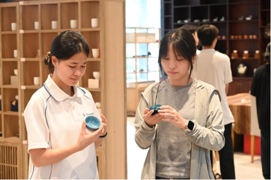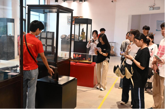 在非遗文化地标百匠园,实践队开启了一场“跨越时空的匠心对话”。展馆内展示着木雕、陶瓷、刺绣、倒画和勾画等传统工艺,展品精美,匠心独具。栩栩如生的龙舟雕刻与象征“事事如意“的柿子陶瓷摆件充分展现了传统手工艺人的智慧与艺术创造力。通过现场观摩与讲解交流,队员们进一步认识到非物质文化遗产在新时代的创新与传承路径,也增强了文化自信和传承意识。“非遗不是尘封的标本,而是活着的生命!”队员周秀清感慨。团队将策划“非遗+荔枝”传播方案,拟通过短视频直播让从化荔枝产业“破圈”传播。