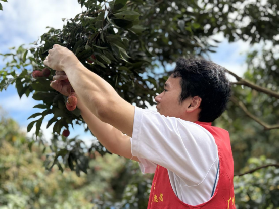 7月1日,正值中国共产党成立104 周年,实践队将主题党日活动搬进荔枝林。在炎炎烈日下,队员们与果农并肩劳作,一丝不苟地采摘、分拣新鲜荔枝,竹筐渐满时,指尖也染上了荔枝的清香。“以前只知荔枝甜,今朝方懂果农艰!”学生党员吴浩锋擦拭汗水笑道。劳作间隙,师生齐唱《歌唱祖国》,激昂的歌声在青山绿水间回荡,唱响了青年学子不忘初心、红心向党的坚定信念,也唱出了在劳动实践中磨砺意志、奉献乡村的青春誓言。