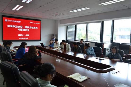 为认真落实中央、省委和贵州大学党委的决策部署,扎实开展学院“不忘初心、牢记使命”主题教育工作,根据机械工程学院党委班子成员开展主题教育调研方案,10月16日,机械工程学院副院长杨勤在机械楼518会议室召开“加强政治建设,提高党性修养”专题调研会,学院党委副书记代祥社及各支部书记、学生党员代表、教职工党员代表参加了会议。材料成型系党支部部分党员教师参与此次座谈,并发言。