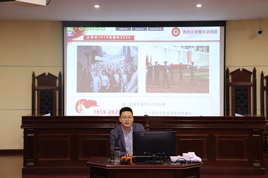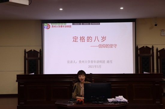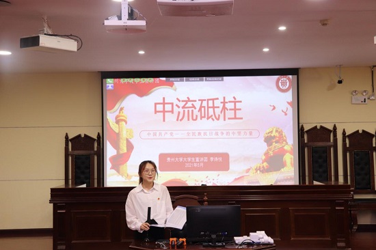 5月27日,法学院在东校区慎思楼模拟法庭开展了党史学习教育专题宣讲会,贵州大学青年讲师团艾欢、路雪担任主讲人,大学生宣讲团成员李诗悦参与本次宣讲,法学191班石博晗担任主持。