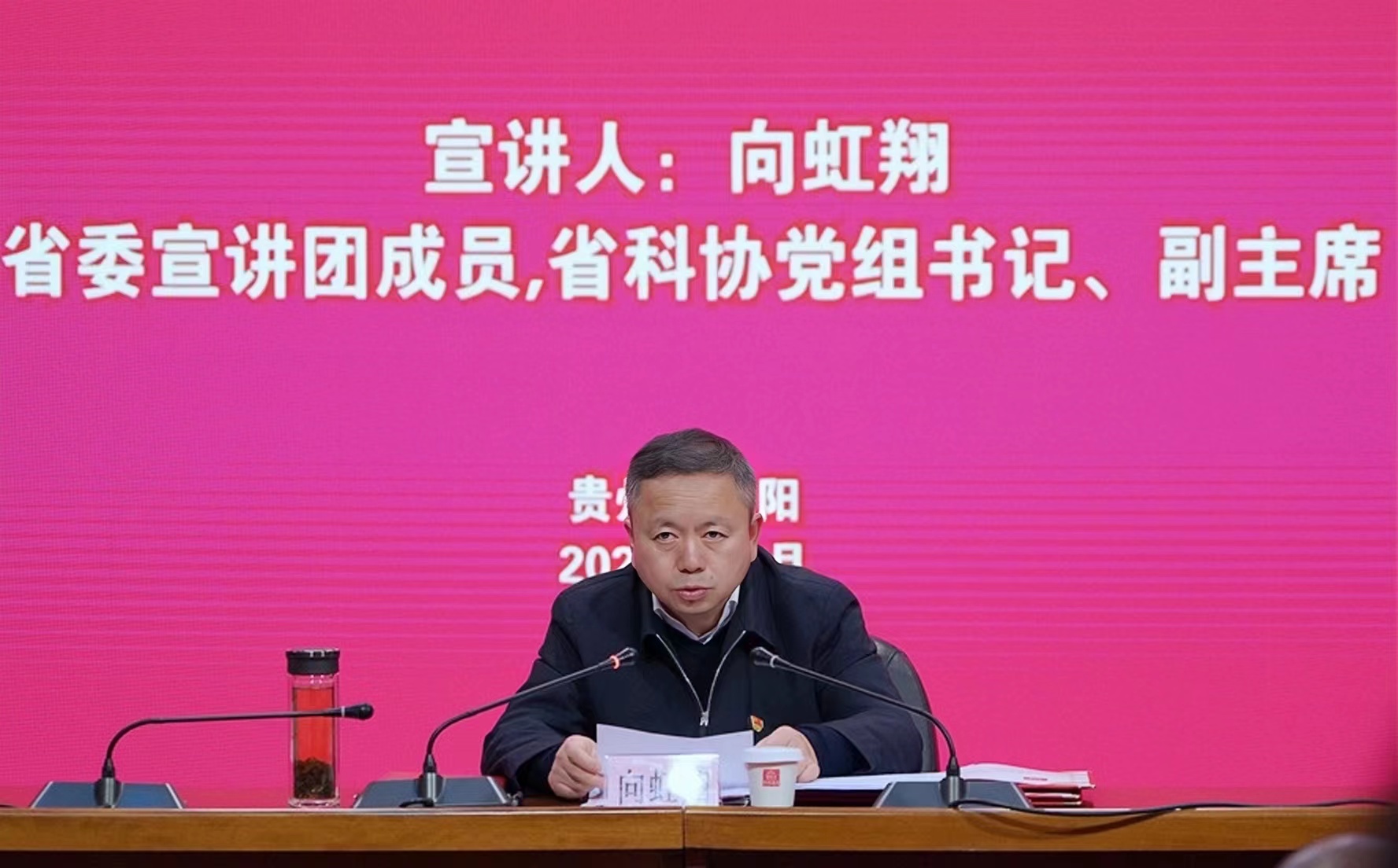 贵大新闻网讯(动静贵州)11月17日,海归科技工作者学习贯彻党的二十大精神宣讲报告会暨省科协首批“海智特聘专家”证书颁发仪式在贵州省科技馆举行。省委宣讲团成员,省科协党组书记、副主席向虹翔为省科协首批海智特聘专家及海归科技工作者代表宣讲党的二十大精神。