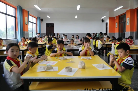 活动当日,修文县第四小学美术教室气氛热烈。贵阳市民间文艺家协会秘书长余小芸、贵州建设职业技术学院艺术设计学院党总支副书记王二辉、团总支书记高吉军,以及艺术设计学院陶艺工作室负责人、贵州省高级工艺美术师刘元海出席活动。修文县文联党组成员、副主席徐彩云,修文县第四小学党总支书记蒋德国,党总支副书记、校长吴小丽及学校劳动教育课程教师团队全程参与此次文化传承活动。