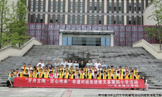 为深入贯彻落实习近平总书记关于文化传承发展的重要讲话精神,积极推动中华优秀传统文化与校园教育深度融合,6月20日,以“牙舟古陶·匠心传承”为主题的非遗文化对话活动在修文县第四小学圆满举行。本次活动由贵州建设职业技术学院艺术设计学院教师党支部、团总支、陶艺大师工作室、贵阳市民间文艺家协会、修文县文学艺术界联合会与修文县第四小学联合主办,通过系统性课程讲授与沉浸式实践体验相结合的形式,引领师生近距离领略牙舟陶这一国家级非物质文化遗产的独特艺术魅力。