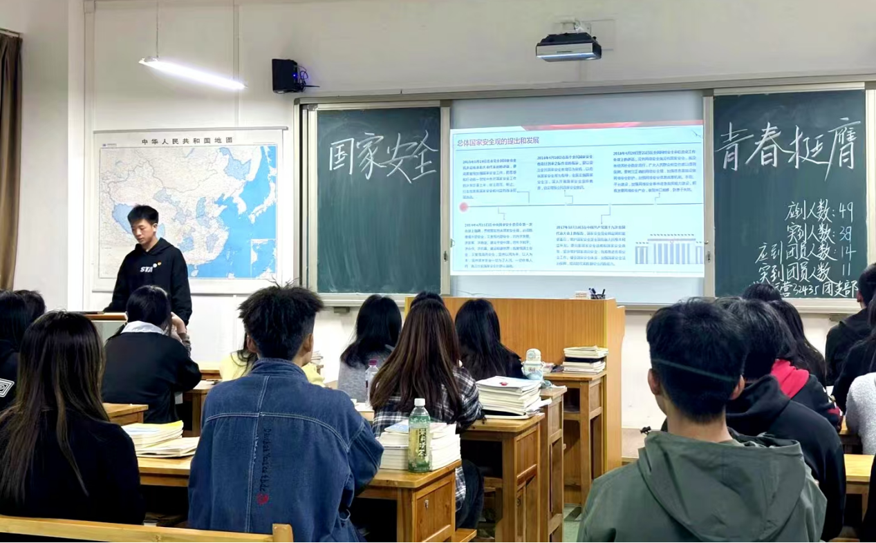城轨机电32321班团支书向同学们强调维护国家安全的重要性。