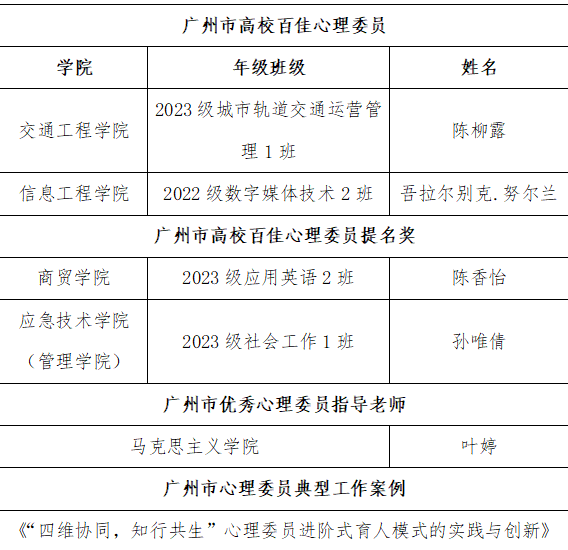 此次多项荣誉的取得,既是对学校心理育人工作的肯定,也为进一步深化心理健康教育内涵、促进学生全面发展注入动力。学校将持续优化心理委员培养机制,探索朋辈心理辅导新方法,推动心理健康教育工作提质增效,为营造健康向上的校园心理生态、助力学生成长成才贡献更多力量。