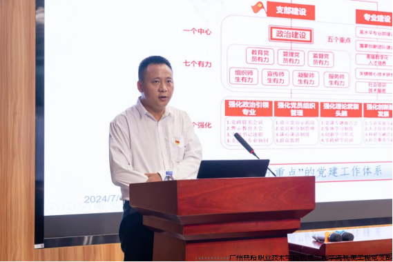 机电工程学院院长李助军、机电工程学院工会主席苏丹、教研室主任吴斌等党员同志做表态发言。李助军表示,要从二级学院行政管理和做好普通党员二个方面,全力支持全国样板支部建设。
