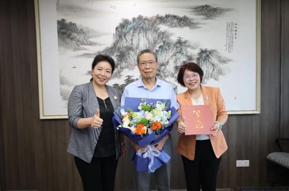 在钟南山院士与学校党委书记余莎、校长卢穗华的交流中,钟南山院士对学校近年来办学水平提高、办学规格提升及校区布局调整等成绩表示充分肯定,对学校未来发展给予建议,对师生给予了深切的祝福和勉励。钟院士希望学校师生继续发扬优良传统,积极投身祖国医疗事业,为区域健康发展培养高素质卫生技术人才,做出广卫人的贡献。