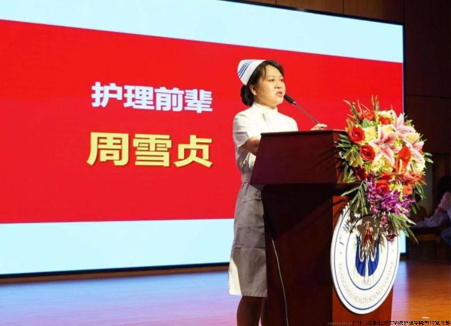 学校党委书记余莎、广州市教育局职业教育与终身教育处二级调研员方昌明、优秀的护理前辈、中山大学孙逸仙纪念医院前护理部副主任、现预防保健科主任、主任护师周雪贞发表寄语,以及毕业生代表林雅欣发言。祝愿同学们能继续发扬广卫的优良传统,用真情与行动诠释南丁格尔誓言,竭诚为人民群众提供高质量的护理服务,为推进健康中国建设贡献年轻的力量。