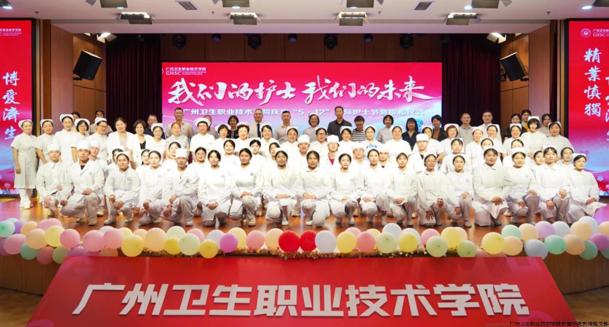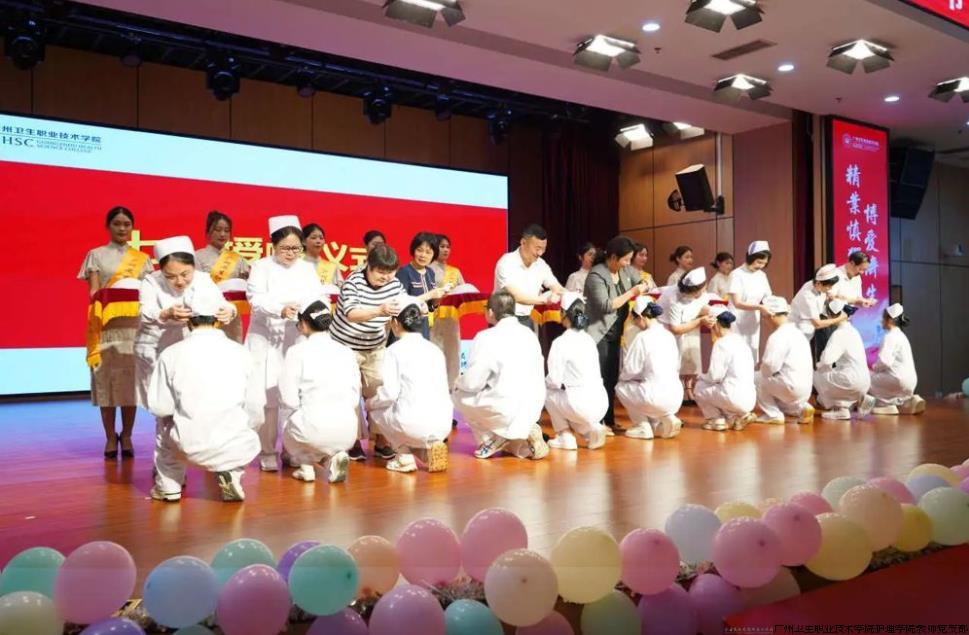 5月8日,为迎接第113个“5·12国际护士节”,广州卫生职业技术学院举办了隆重而热烈的庆祝“5·12”国际护士节暨授帽仪式,百余名护生代表依次走上台阶,单膝着地,由护理行业前辈亲手为他们戴上象征圣洁天使的洁白燕尾帽,并接过象征南丁格尔精神的蜡烛。一顶燕帽,一身白衣初心与梦想,他们面向南丁格尔像庄严宣誓,大爱与感动在烛光的传递中熠熠生辉。1300余名广卫学子踏上护理道路的成人礼,将最美的青春奉献给护理事业,为推进健康中国建设贡献年轻的力量。