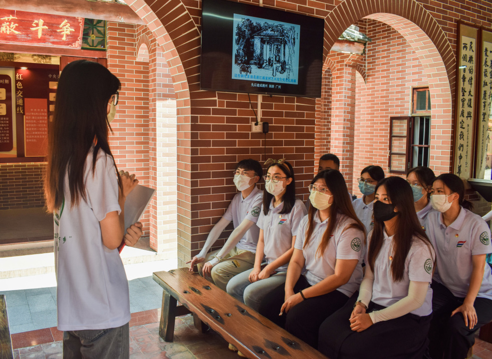 依托陈列馆内丰富的红色资源,实践队在菉塘红色交通站陈列馆开展以“红色基地学党史,不忘初心跟党走”为主题的党史学习教育宣讲会。实践队队长陈欣钰同志运用史料和生动事例,为队员及村民们讲述林林等同志秘密重建广州湾支部,以及领导师生、农民参加抗日等活动的红色历史。
