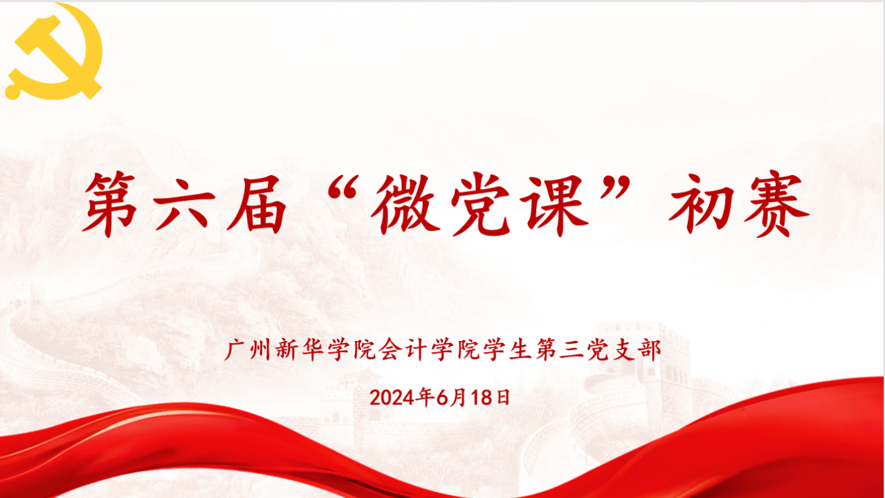 为深入学习贯彻习近平新时代中国特色社会主义思想,认真贯彻落实中央关于党纪学习教育的决策部署,提高党员教育培训质量,牢牢把握党纪学习教育“学纪、知纪、明纪、守纪”的总要求,扎实推进 “党建育人+思想引领”模块的建设发展,广州新华学院会计学院学生第三党支部于2024年6月18日晚上在定静1A201举行第六届“微党课”比赛初赛评选。