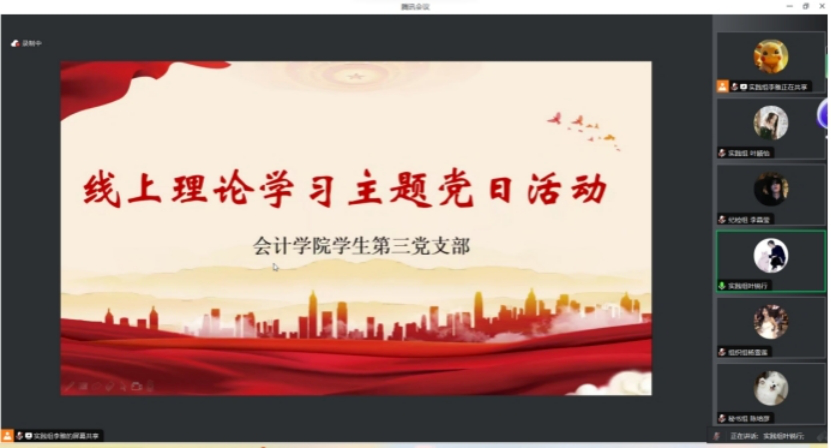 为深入学习贯彻习近平新时代中国特色社会主义思想,推动党史学习教育走深走实,引导会计学院学生第三党支部同志提高思想觉悟,坚定理想信念。会计学院学生第三党支部立足于推进“党建育人+思想引领”的专项模块工作,并结合实际工作,于2024年2月16日通过线上会议形式开展以“聚焦主题主线,筑牢思想根基”为主题的理论学习主题党日活动。