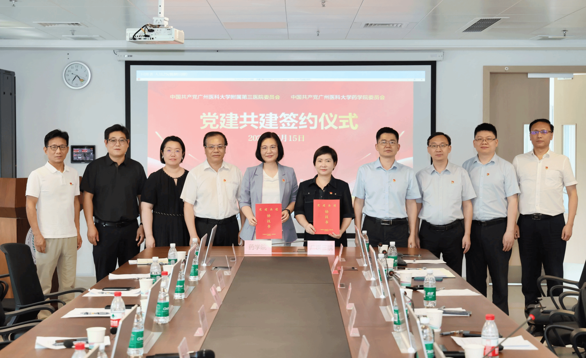 随后,双方举行了简约而隆重的党建共建签约仪式。本次党建共建的扬帆启航,既是对过往探索的总结,更是迈向新征程的起点,标志着双方将以党建为引领,携手开启两院协同发展的新篇章。未来,双方将在学科建设、人才培养、医疗服务、科学研究等多个方面,从党委同频、党员联训、发展联促、实事联办四个层次,全方位开展党建共建工作,充分发挥各自的优势和特色,携手共进,为推动学校“双一流”建设,为区域医药卫生与教育事业的发展贡献更多智慧和力量。
