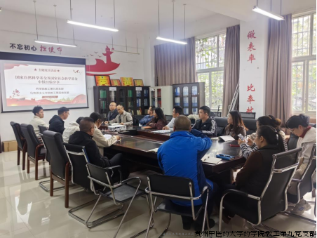 为深入贯彻落实新时代党的建设总要求,推动党建工作与业务工作深度融合,切实提升教师科研能力与项目申报水平,2025年10月27日,贵州中医药大学药学院教工第九党支部与马克思主义学院教工第四党支部在思邈楼115会议室联合开展国家自然科学基金及国家社会科学基金申报经验分享会。本次主题党日活动由药学院教工第九党支部副书记张涛主持,两个支部的党员教师及部分教师代表参加此次活动。
