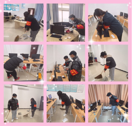 为了提高同学们的劳动积极性,2021年12月16日中午12:30,红旗学习社五位入党积极分子在党总支组织委员姜迎春同志的带领下在图书信息大楼A904、A906教室开展了劳动实践活动。