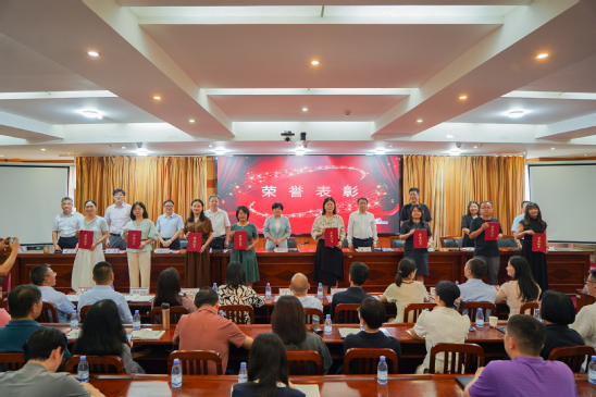 庆祝大会以“以教育家精神铸魂强师,谱写教育强国建设华章”为主题。在庄严的国歌声中,大会拉开序幕。校领导为2023-2025学年“先进基层党组织”“优秀共产党员”“优秀党务工作者”“教学标兵”“科研标兵”“最美教育工作者”“最美辅导员”等受表彰的集体与个人颁发荣誉证书。
