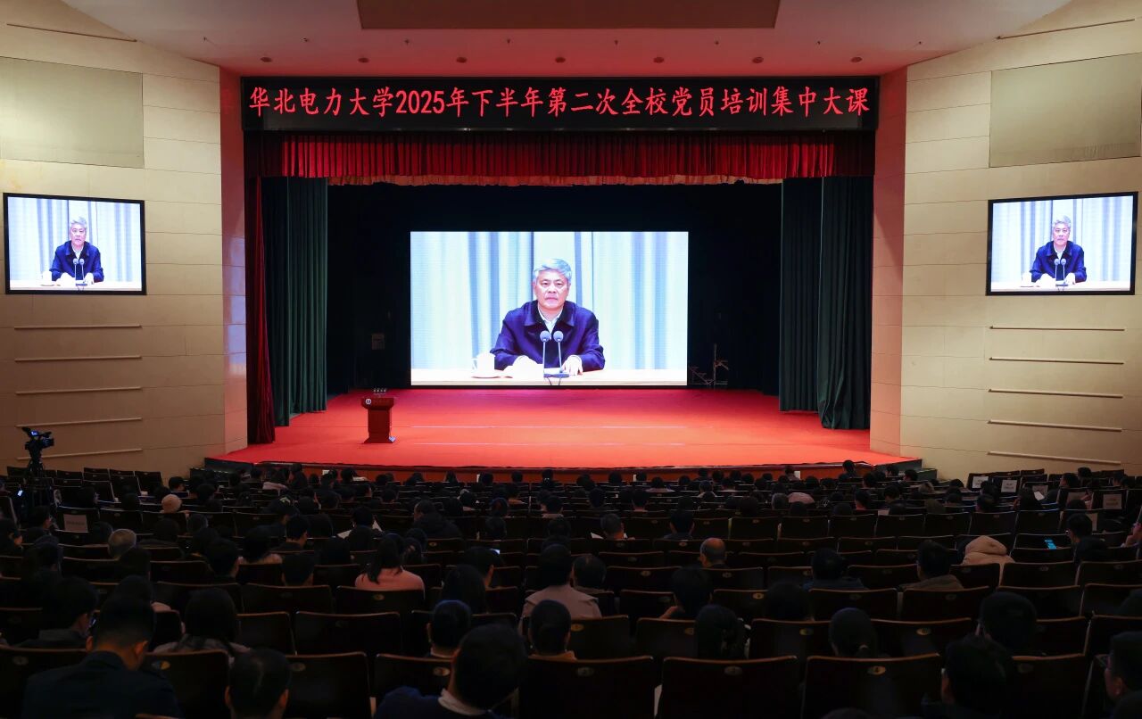 11月25日,华北电力大学组织开展2025年下半年第二次全校党员培训集中大课,集中学习中央党校(国家行政学院)分管日常工作的副校长(副院长)谢春涛教授讲授的专题报告《中国共产党与中华民族伟大复兴》。兄弟高校有关同志到会观摩指导,集中大课由学校党委书记汪庆华主持。四方研究所党支部全体党员参与集中学习。