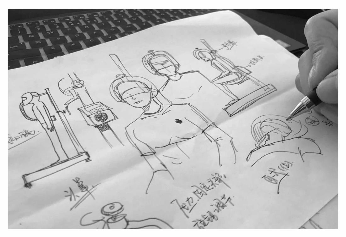 为了配合湖北省疾控中心医疗人员研发专业医用设备,胡易冰老师更是拿出自己的全部热情,积极配合、全情投入,用设计技能帮助科研人员手绘产品示意图。从接到任务到理清思路,从原型设计到细节沟通,从多次修改到最终定稿,三天之内胡老师专注于这件事,为防疫产品最终的顺利生产添砖加瓦,为打赢这场防疫阻击战贡献了力量。(介于知识产权和保密考虑,不能提供相关图片资料)