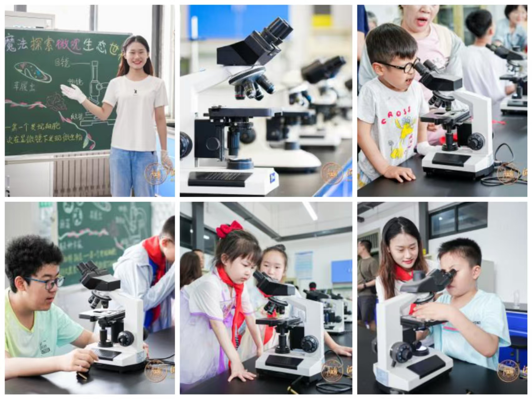 孩子们通过显微镜,观察水样微生物、植物细胞、昆虫器官等,感受微观生态魅力。