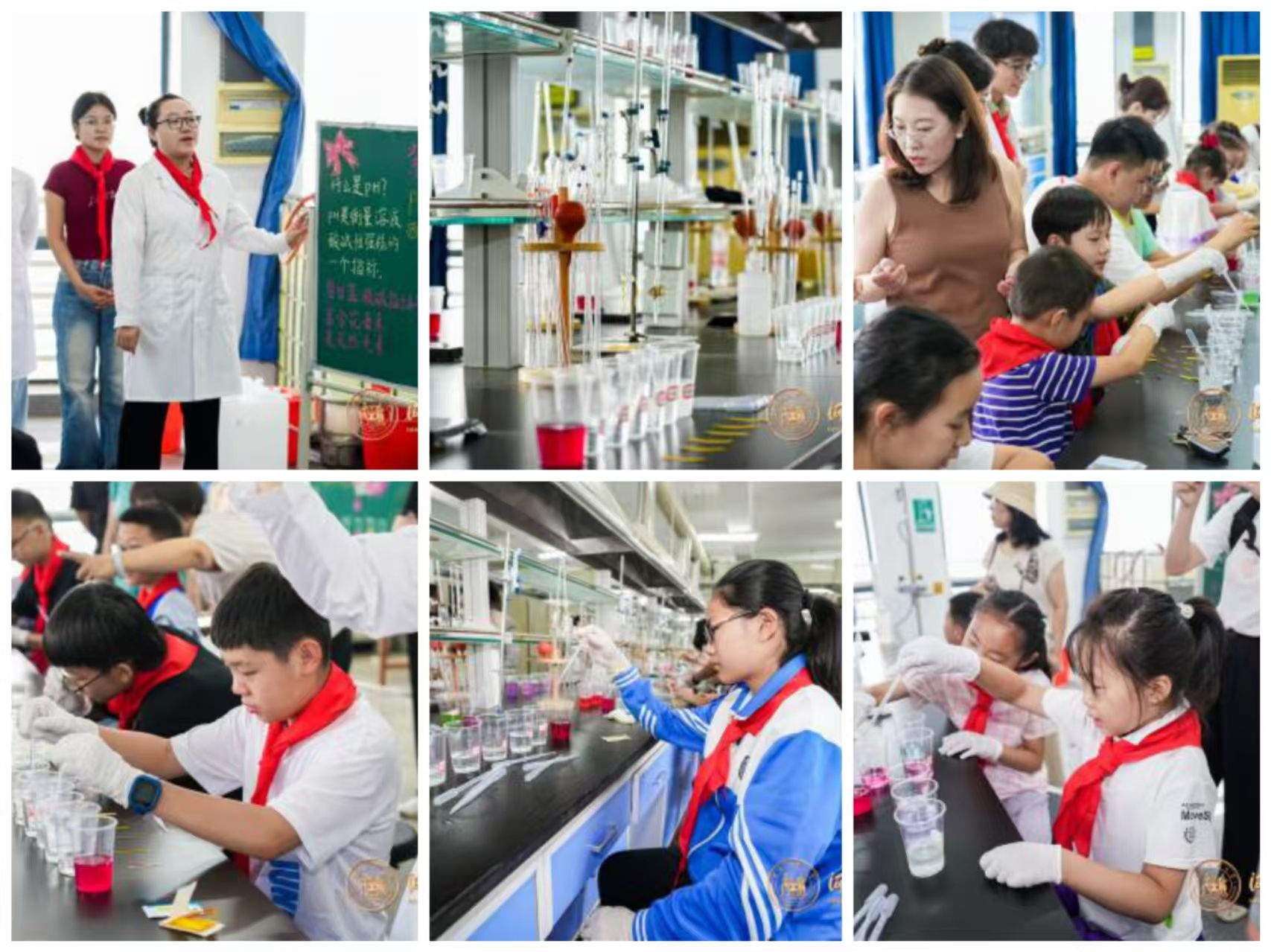 孩子们通过神奇的显色实验让水样绽放瑰丽色带,酸碱度的变化引发阵阵惊叹,直观理解水质监测原理。