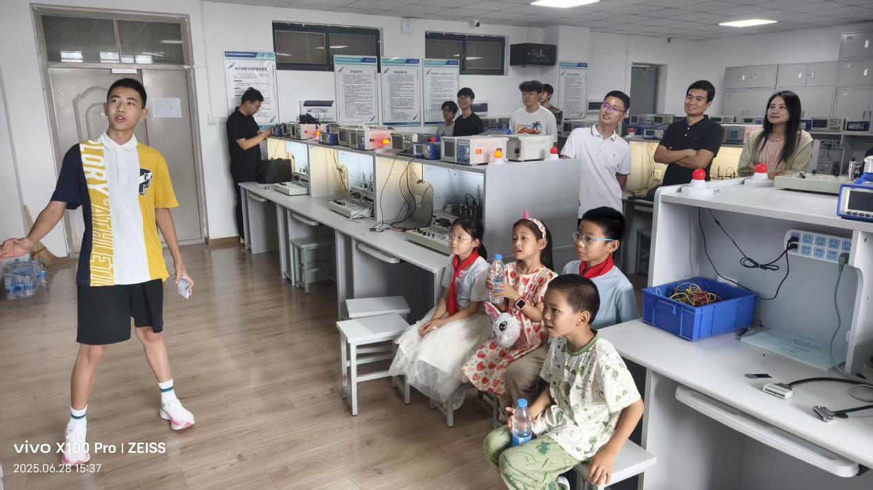 电子信息工程学院同步开展“神奇的声波”实验,示波器上跳跃的声频曲线,揭开了声音传播的物理密码。