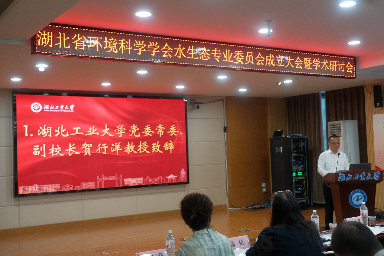 湖北工业大学党委常委、副校长贺行洋教授出席大会并代表学校致欢迎辞,湖北省环境科学学会秘书长胡春华代表环境学会宣读了成立水生态专委会批复,湖北省环境科学学会副理事长、湖北理工学院副院长肖文胜教授主持了成立大会并宣读了湖北省环境科学学会理事长王焰新院士的致辞。湖北省环境科学学会副理事长、水生态专委会筹备组负责人、湖北工业大学熊文教授介绍专委会筹备情况,并宣布了专委会组成人员名单。