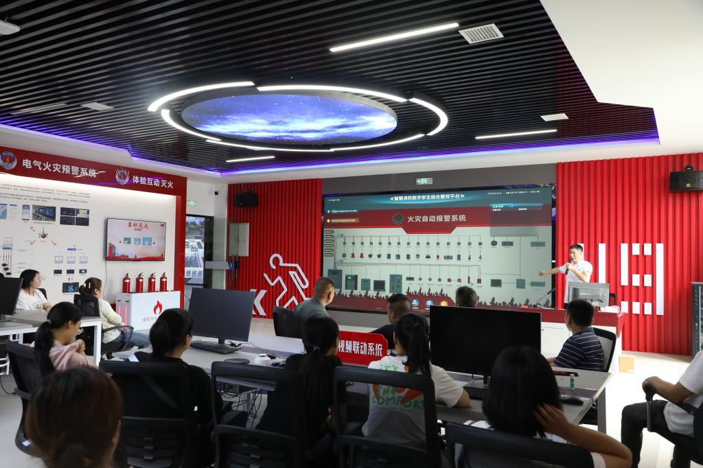 本次培训聚焦“数字赋能消防管理”,在智慧消防科普教育环节,建筑工程学院副教授阚正武现场演示“智慧消防虚拟灭火系统”(通过VR技术模拟火灾扑救场景)与“数字孪生系统”(基于三维建模还原建筑消防设施布局),同步介绍建筑消防技术、消防救援技术专业的实训条件与教学成果。参训网格员通过沉浸式体验,直观了解消防行业智能化发展趋势,夯实专业知识储备。