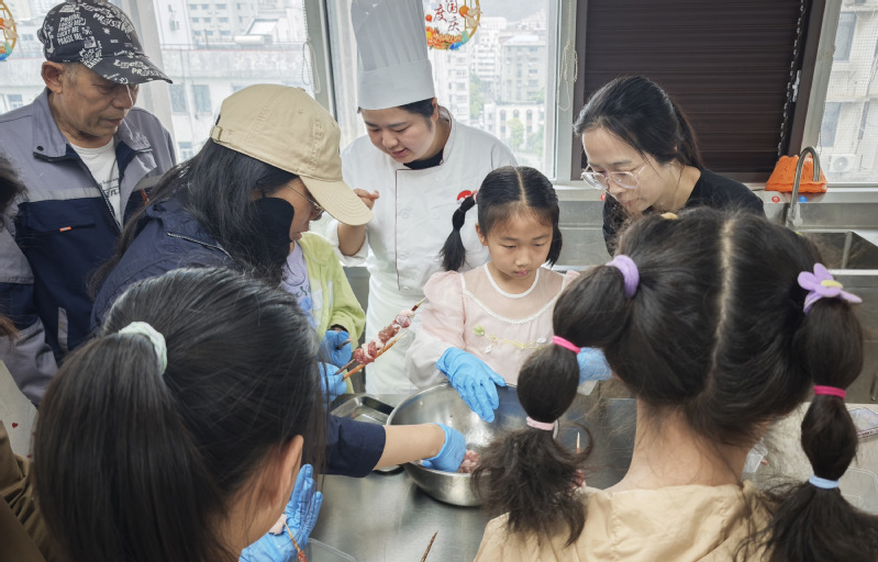 4月19日,由湖北省妇女儿童活动中心主办,湖北经济学院楚菜现代产业学院、湖北楚菜研究院承办的“小小楚菜美食家”活动迎来第二周实践课堂。作为“楚凤家·成长”系列的重要组成部分,本次活动以“劳育成长与文化传承”为核心,吸引16组7—12岁亲子家庭参与,共同体验楚菜魅力——制作湖北罗田黑山羊肉串。