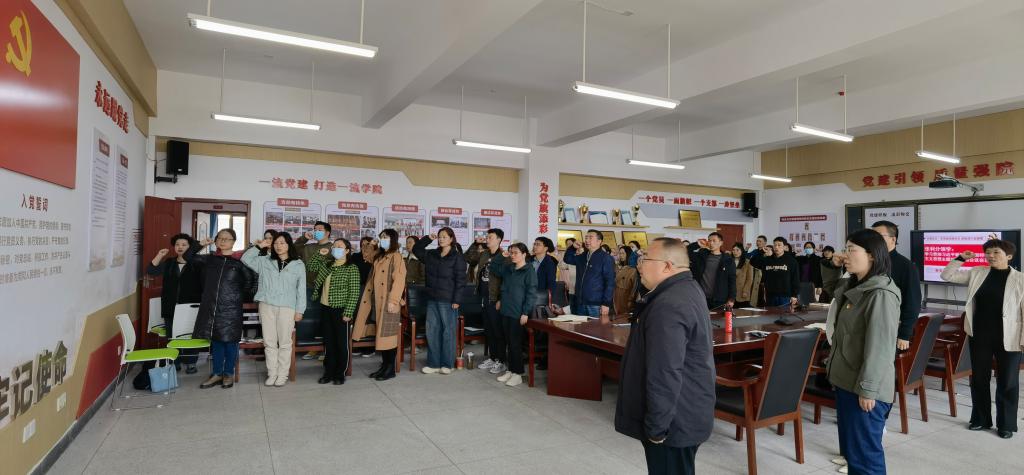 全体党员重温了入党誓词,集体诵读《党章》总纲第11-32自然段内容并缴纳党费。大家集中学习了《学习贯彻习近平新时代中国特色社会主义思想主题教育总结会议在京召开》、《小鹏部长在2024年交通运输行业党风廉政建设工作会议上的讲话提纲》、《省教育厅召开2024年全省教育工作会议》、《党史学习教育工作条例》、《湖北省持续推进整治形式主义为基层减负工作实施方案》等文件精神。