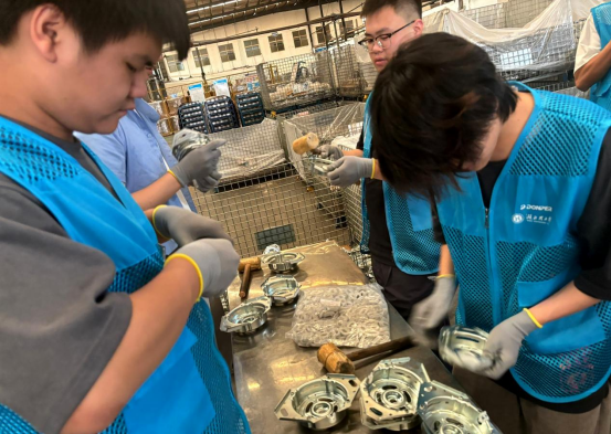 机电志愿者们在技术负责人带领下参观了智能化生产线与精密加工车间,了解高端装备制造流程与企业核心技术需求。志愿者们分组进入数控加工、机械装配、电气控制等岗位,在工程师的指导下参与设备故障检修、生产线效率优化等项目。志愿者们从感受书本知识的“被动接受”转为“主动参与”切身实践的模式。