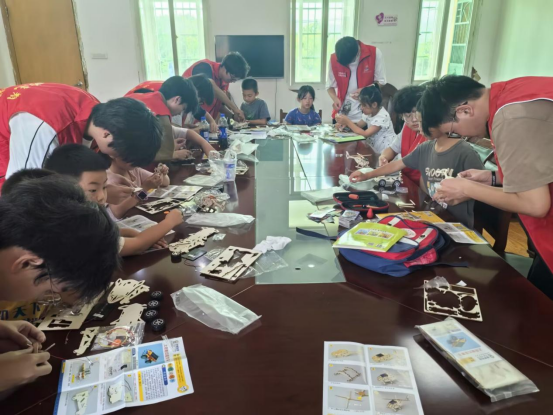 志愿者们发挥专业特长,为社区的中小学生打造了集课业辅导、科技启蒙、安全教育于一体的“七彩假期”暑假课堂。志愿者们不但化身“机械小讲师”,辅导孩子们完成暑假作业,还结合机械专业知识为孩子们设计了一系列的科技课程,借助积木拼图以及基础的纸质齿轮、零件,让孩子们直观地感受到了机械的魅力。