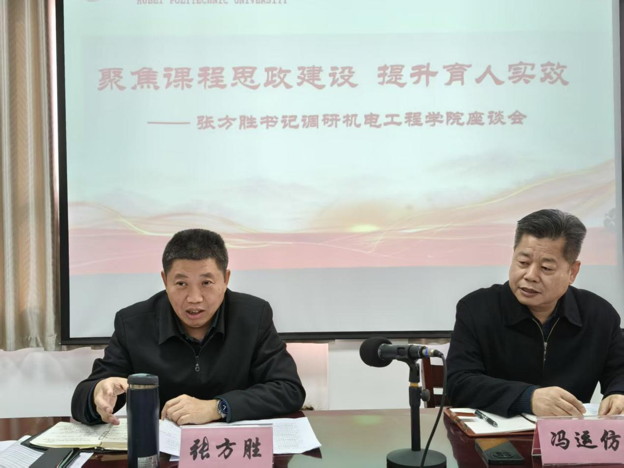 为进一步加强课程思政建设,深化学校课程思政教育教学改革,全面推进课程思政与专业教学的深度融合,12月11日下午,校党委书记张方胜就学校课程思政建设工作带队到机电工程学院开展专题调研。党委副书记、副校长冯运仿主持调研活动。