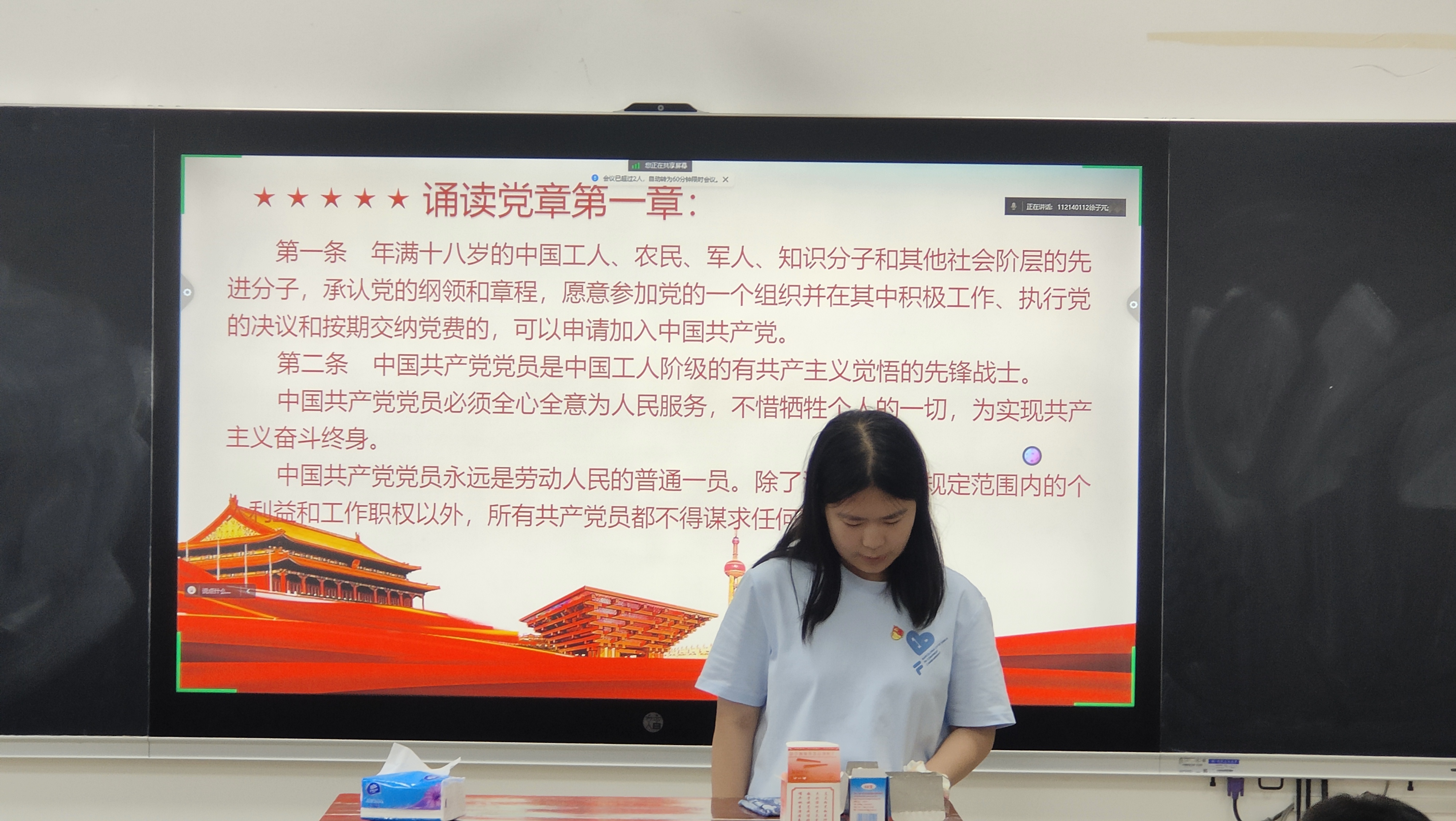 第三项:组织党员诵读党章,由第三党小组领学党章第十一章;由第三党小组成员张颖同志诵读第一、第二条。
