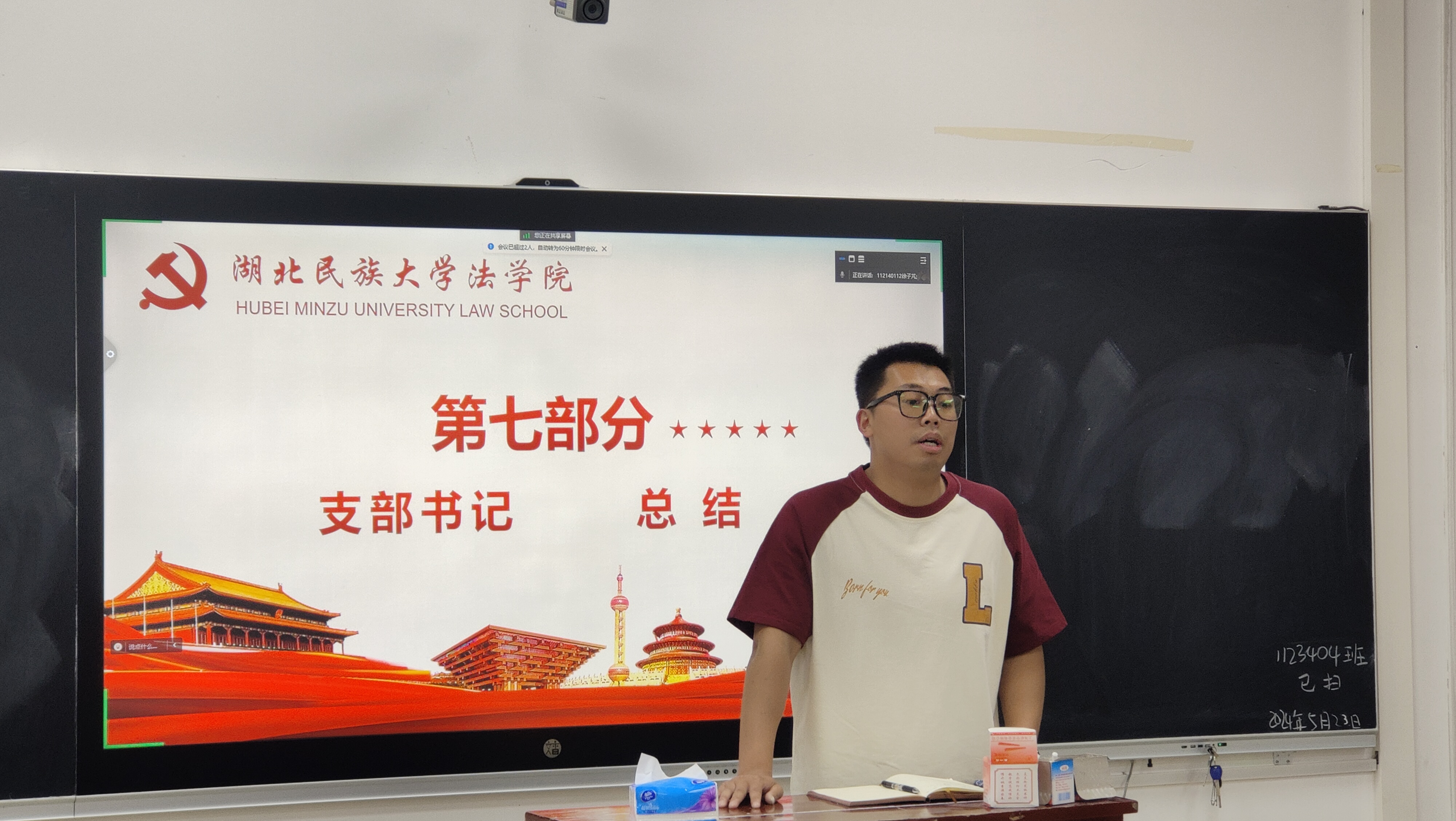 5月23日下午,法学院学生党支部在9b306和腾讯会议开展五月主题党日活动。