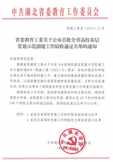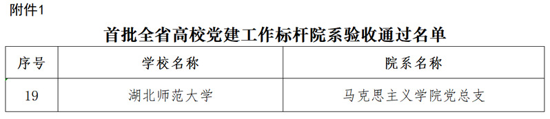 近日,湖北省委教育工委公布了全省高校党建工作“双创”项目验收通过名单,湖北师范大学马克思主义学院党委作为首批湖北省高校党建工作标杆院系顺利通过验收。
