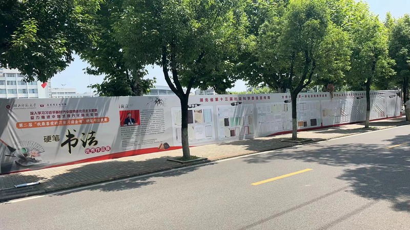 为深入学习贯彻习近平总书记关于学校思政课建设的重要指示,推进习近平新时代中国特色社会主义思想学习研究走深走实,不断推动思政课建设与党的创新理论武装同向同行、同频共振,湖北师范大学以湖北省第十三届社会科学普及宣传周为契机,结合师范大学办学优势特色,自5月20日开始,学校举办第二届“我最喜爱的习言习语金句”书法竞赛暨优秀作品展系列思政课实践教学活动,该展出将持续2周时间。本次硬笔书法竞赛面向全校学生,聚焦“深入学习习近平新时代中国特色社会主义思想奋力推进中国式现代化湖北实践”主题,由马克思主义学院、宣传部、团委、校社科联与湖北省社科普及教育(黄石)基地联合主办。