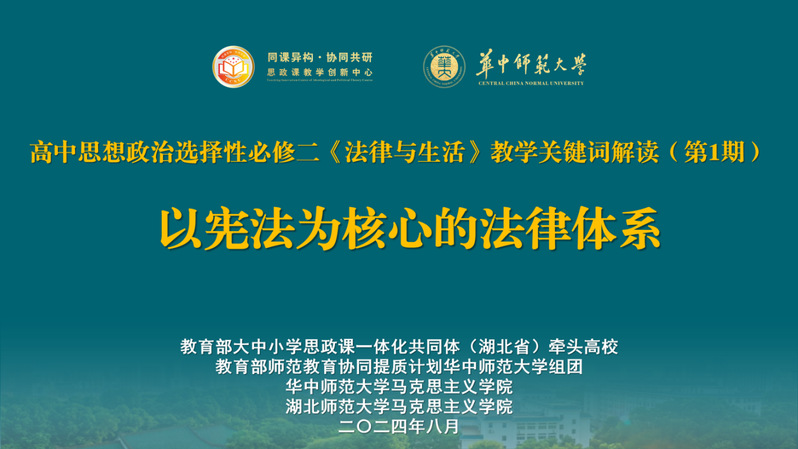 本期活动聚焦高中思想政治选择性必修二《法律与生活》教材第一页关键词“以宪法为核心的法律体系”进行解读,华中师范大学马克思主义学院副院长李芳教授主讲,我院副院长王振钰教授主持。全国大中学思政课教师和师范生300余人线上参加了学习。