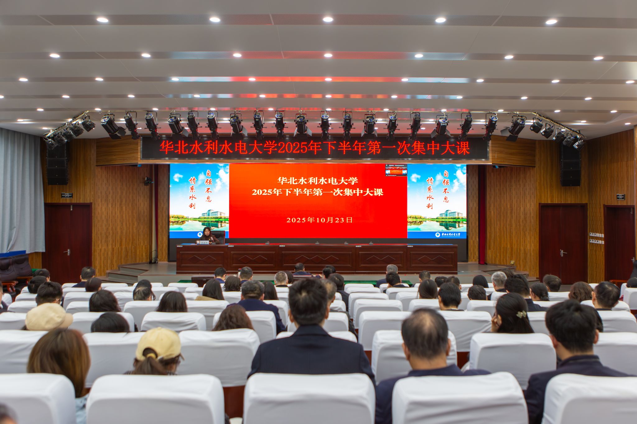 10月23日下午,华北水利水电大学举行2025年下半年党员基本培训第一次集中大课,全校4000余名师生党员分别在龙子湖校区综合实验楼南楼一楼多功能厅主会场及40个分会场,共同学习中央党校(国家行政学院)分管日常工作的副校(院)长谢春涛教授讲授的视频课程。省委教育工委一行3人到会指导。集中培训由校党委副书记焦爱萍主持,其他校领导分别在各会场与师生党员一起参加培训。
