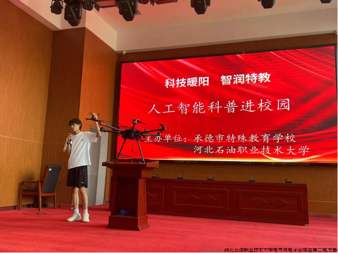 2025年6月17日,河北石油职业技术大学电气与电子系党总支、学生第二党支部、团总支党员师生代表带着精心设计的“AI互动课堂”走进承德市特殊教育学校,为这里的启智(智力障碍)、启音(听力障碍)、孤独症等80余名特殊儿童,带来了一场“看得见、摸得着、玩得懂”的人工智能科普盛宴。这场跨越科技与温情的对话,让“高冷”的AI技术化作温暖的钥匙,为特殊孩子们打开了认识世界的新窗口。