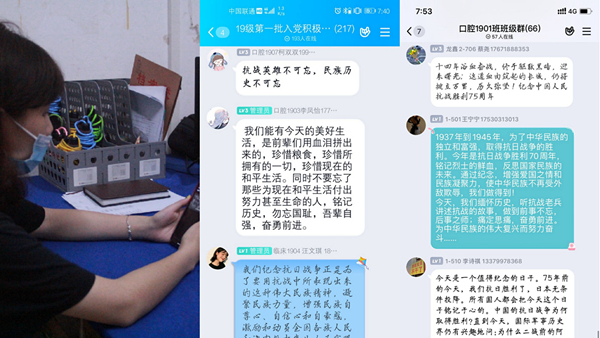 其他学生党员也纷纷在学生党支部群发表自己的感想和体会,表达对革命先烈的赞扬和对祖国的热爱。