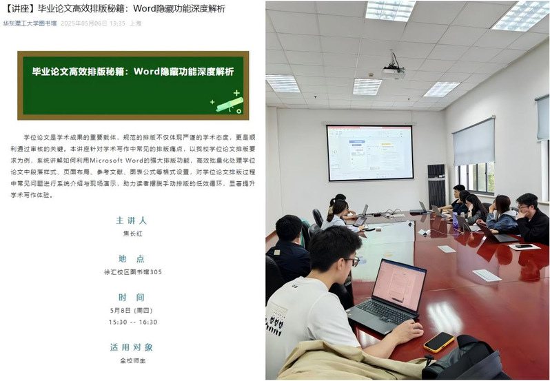 第二党支部聚焦毕业生群体,针对学位论文排版规范等实际需求,组织开展专题辅导讲座,通过解锁Word隐藏功能,助力读者摆脱低效手动排版,显著提升学术写作体验,获“及时雨”式好评。
