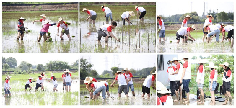 在合作社工作人员的指导下,师生们一起将秧苗插入大家提前绘制成的图案中。左手出秧,右手插秧,整个过程看似简单,实际操作起来却没有那么容易。不一会大家便开始汗流浃背,手上和脚上也沾满泥巴,有人因为之前没有插秧经验,很快就开始腰酸背疼,但大家都选择了用手臂擦去脸上的汗水,继续弯腰坚持,直至完成图案的绘制。“很辛苦但也很开心,我们竟真的把我们的信仰用自己的双手在稻田里种了出来。”药物化工所研究生党支部支部书记王卫国自豪地说道。